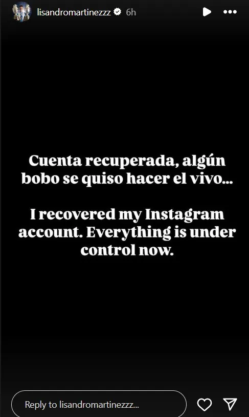 The player, who recently won the Copa AmĆ©rica 2024 with the Argentina national team and is currently in pre-season with Manchester United, has since regained control of his account and stated: āI recovered my Instagram account. Everything is under control now.ā
