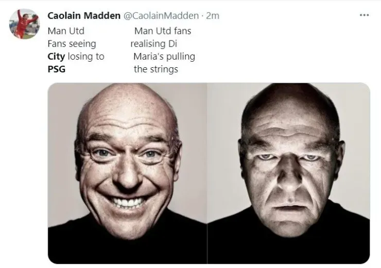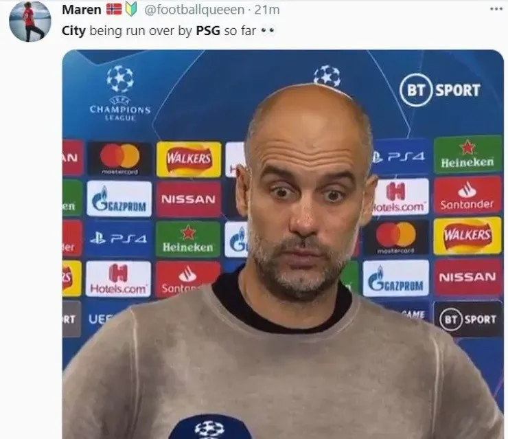 In the second half, City finally found the net in a surprising way. Twoeffortsunexpectedly ended up beating Keylor Navas, as De Bruyne’s cross got in and Mahrez’ free kick shot slipped throught the wall, and fans reacted with hilarious memes on the Internet.