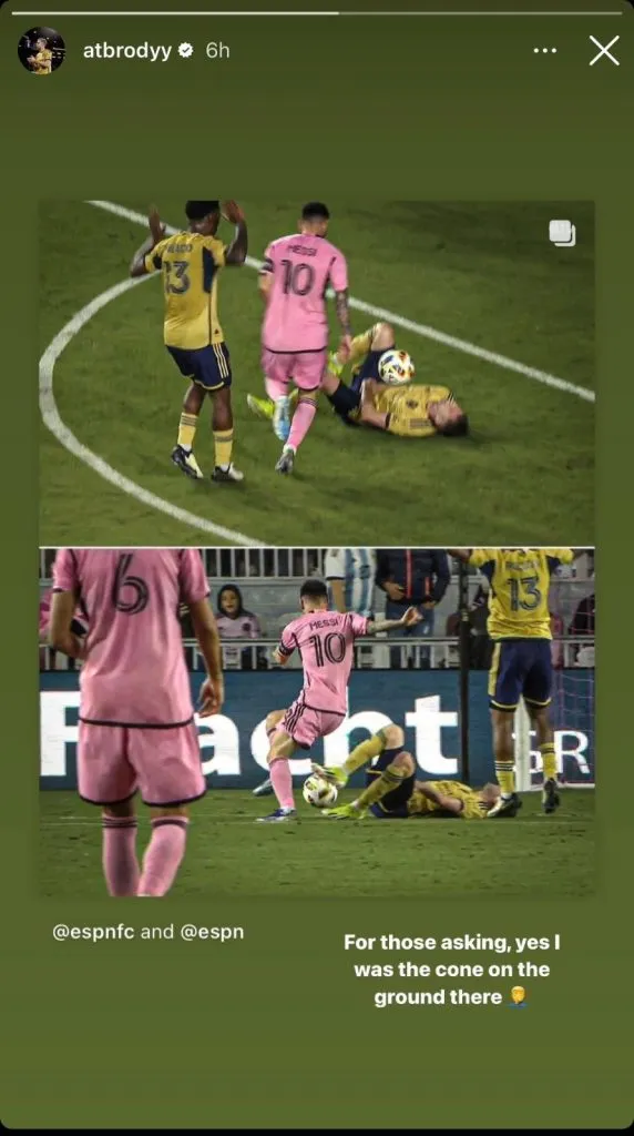 Andrew Brody took to Instagram and wrote “for those asking, yes I was the cone on the ground.” Brody was down on the ground due to an Inter Miami player stomping on his hand which took several minutes for him to recover from.