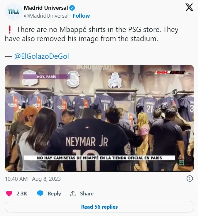 With Lionel Messi and Neymar no longer at the club, Kylian Mbappe has been left as the face of Paris Saint-Germain for the 2023-24 season. However, it looks like his exclusive popularity in the French capital hasn’t translated into record sales.