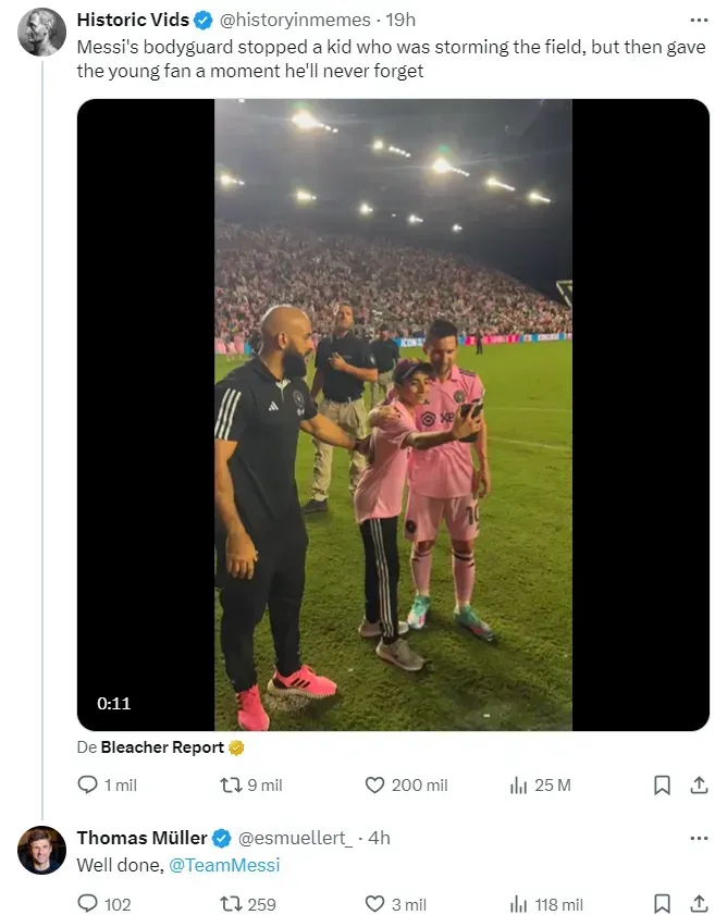 Now, Thomas Müller showed his admiration for Leo through a message in X (formerly Twitter). “Well done”, wrote the Bayern Munich star after watching a video of the former Barcelona player with a fan. He even tagged him, although Messi never had an account on that social media platform.