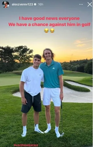 Their camaraderie on the golf course contrasts with their intense matchups on the tennis court. Zverev has faced tough losses against Alcaraz, notably suffering crushing defeats at the hands of the young Spaniard. “I have good news everyone. We have a chance against him in golf,” Zverev humorously quipped on his Instagram Story.