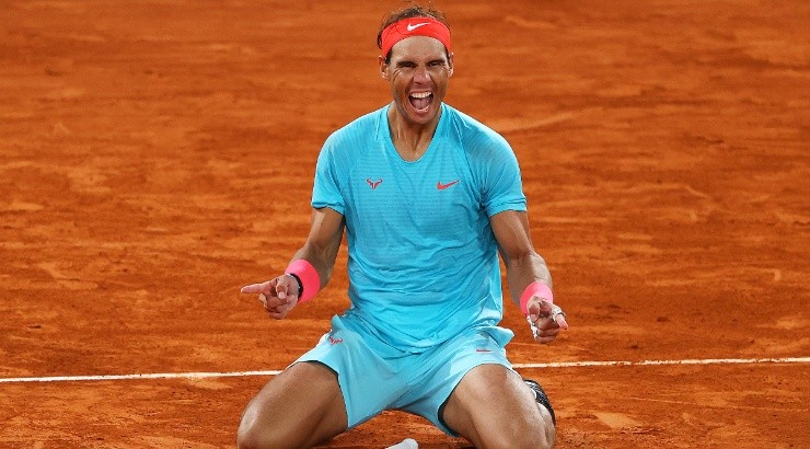 Rafael Nadal of Spain celebrates after winning the 2020 French Open. (Getty)