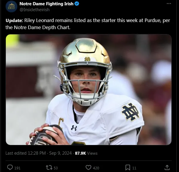 As Notre Dame approaches Week 3 and a chance to rebound from a tough home loss to Northern Illinois, some roster adjustments are anticipated. However, Riley Leonard is expected to remain the starting quarterback for the game at RossāAde Stadium on September 14.