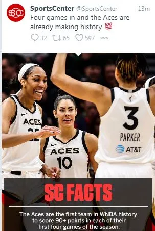 After winning a key game on May 28 against the Minnesota Lynx 94-73 they not only established a 4-wins streak, but now the Las Vegas Aces are the first team in WNBA history to win their first four games of the season by 90 points or more.