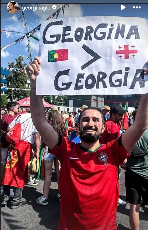 Ronaldo’s partner shared an Instagram story of Portuguese fans mocking the upcoming opponents, claiming Georgina is greater than Georgia with a banner that went viral on social media.