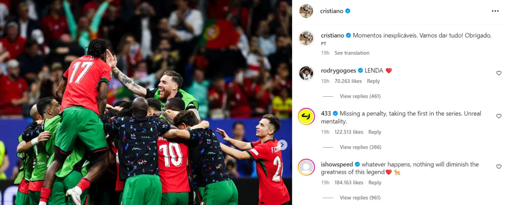 Portugal claimed a hard-fought penalty shootout win over Slovenia in the UEFA Euro 2024 round of 16 to set up a thrilling quarterfinal against France. Even though it wasnāt a great night for Cristiano Ronaldo, the veteran star still felt nothing but support from his fans.