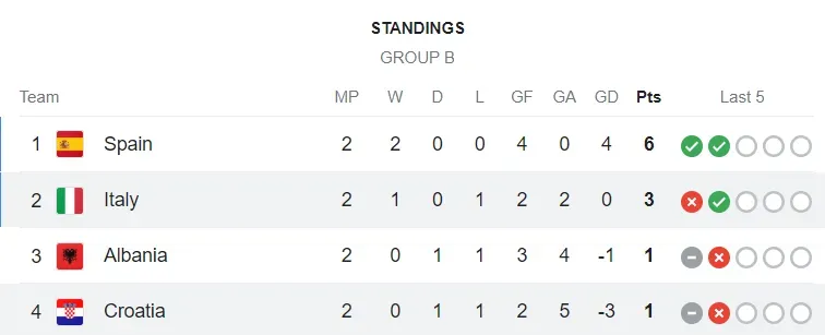 The defending champs hold their destiny in their own hands. A victory over Croatia would see Italy qualify for the UEFA Euro 2024 knockout stages as they would reach six points. Albania and Croatia are currently tied with one point each.