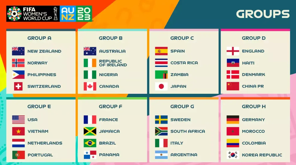 With the expanded field, there will be eight groups of four teams each. These will be the 2023 Women’s World Cup groups: