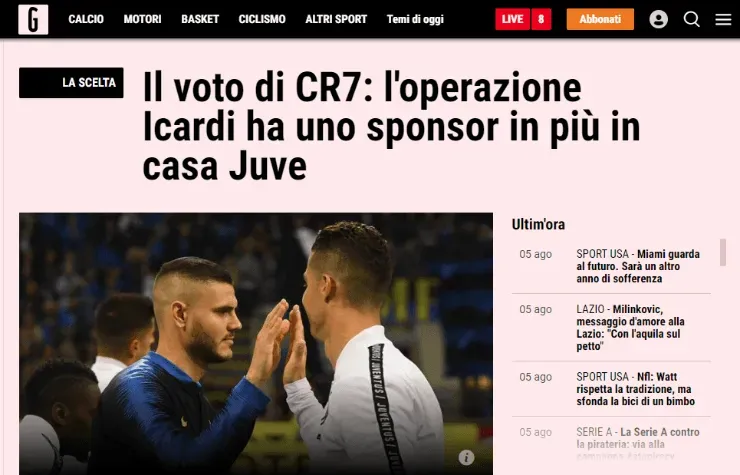 Es que el portalLa Gazzetta dello Sport informó que nada más ni nada menos queCristiano Ronaldo, referente del ataque de La Vecchia Signora,le habría dado el visto bueno a los directivos para que vayan en busca del goleador del cuadro de Milán.