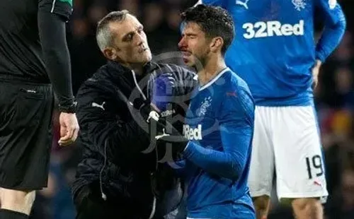 En el encuentro queGlasgowRangers venció 2-0 al Motherwell con goles deDanny Wilson y Alfredo Morelos, Lalo se comió un patadón en la cara.