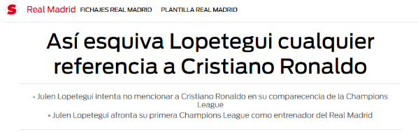 Sin embargo, a JulenLopetegui, entrenador del Merengue, le importa muy poco lo que pase con el delantero de la Selección de Portugal.