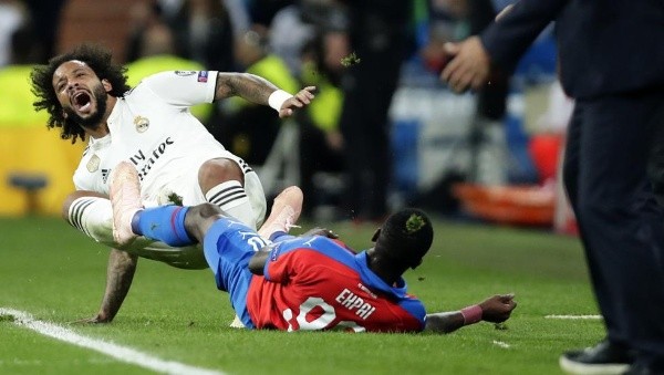 Sobre el final del triunfo delReal Madridcontra ViktoriaPlzen, que fue 2-1 por la ChampionsLeague,Marcelodebió salir del campo de juego.