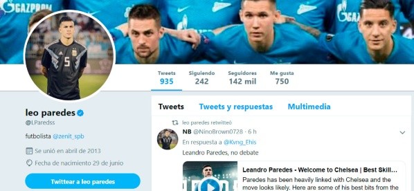 Hace algunas horas, Paredes ‘retwitteó’ un videode un usuario que le da la bienvenida al Chelsea, club que estaba interesado en contratarlo.