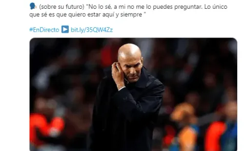 Pero cuando a Zidane le preguntaron pos su futuro, él mismo pareció dudar:“No sé si me juego el puesto. A mí no me lo puedes preguntar eso. La situación la conocemos pero se lo tienes que preguntar a otro”, respondió.