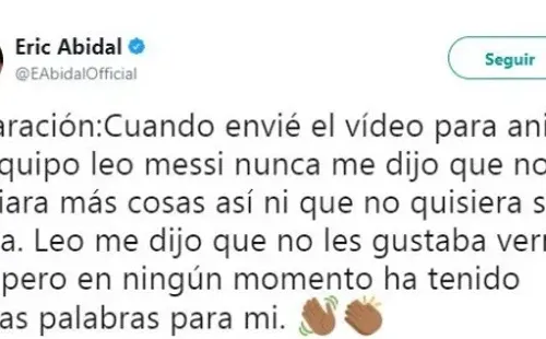 “Cuando envié el vídeo para animar al equipo Leo Messi nunca me dijo que no les enviara más cosas así ni que no quisiera saber nada. Leo me dijo que no les gustaba verme así, pero en ningún momento ha tenido malas palabras para mi”, escribió en un tuit.