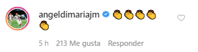 Pero esto no quedó ahí, Ángel Di María no pudo contenerse y le comentó la foto. El jugador de PSG le envió una serie de emojis para felicitarlo.