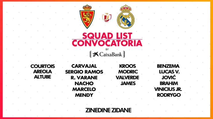 Este martes, Real Madrid hizo oficial la lista de convocados para enfrentar a Zaragoza mañana por los octavos de final de laCopa del Rey.