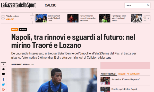 Sin embargo, según informa el prestigioso periódico italiano La Gazzetta Dello Sport, al mediapunta lo viene siguiendo de cerca un equipo muy importante de aquel país, uno que pelea los primeros puestos en las últimas ediciones de la Serie A.