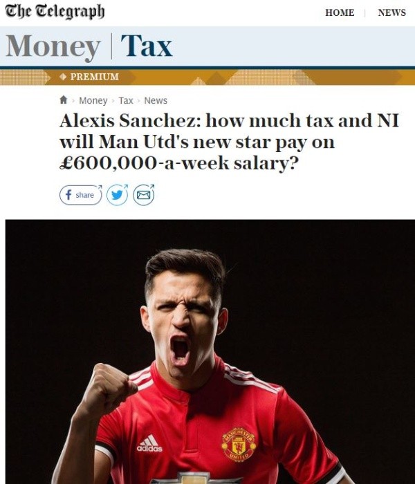 El diario británico señala que el delantero chileno deberá gastar casi el 45 por ciento de su sueldo en impuestos, salud, educación y pensiones en Inglaterra.