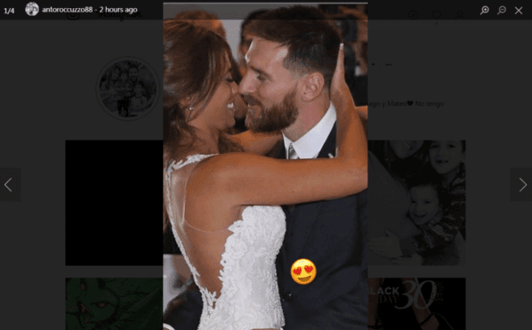 Antonella Roccuzzo, su hermosa pareja, le dedicó una historia en Instagram. La morocha subió una foto junto al delantero de Barcelona y un corazón.