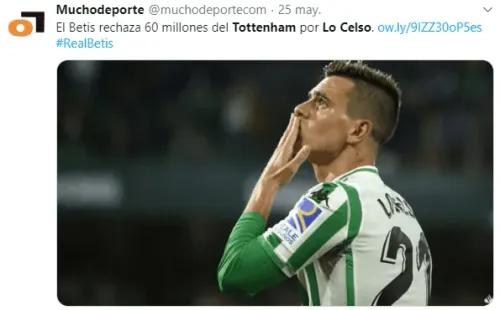 Se trata del argentino Giovanni Lo Celeso, por quien ya habrían ofrecido al Real Betis70 millones de euros.