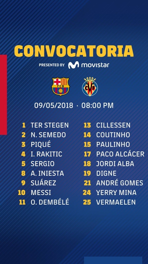 Cabe destacar que Samuel Umtiti fue baja en los llamados por Ernesto Valverde, ya que sufre de molestias en la rodilla izquierda.