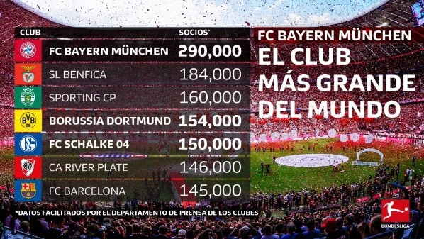 Según informó la página oficial de la Bundesliga, Bayern Munich es el equipo que más socios tiene en todo el mundo.