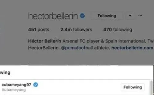 Héctor Ballerín, lateral de Arsenal, empezó a seguir a Aubameyangen Instagram: