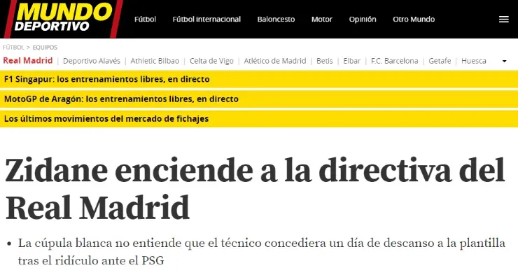 Según reportó Mundo Deportivo, la cúpula dirigencial del Real Madrid habría levantado temperatura considerablemente fruto de la decisión de Zizou de brindarleun día del descanso al equipo tras la goleada padecida en París.