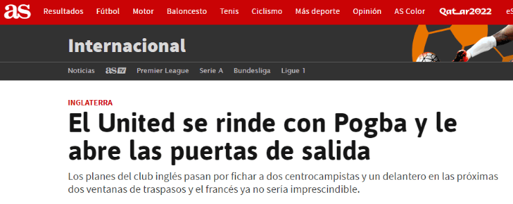 Según reportó AS, Los Diablos Rojos, luego de muchos intentos, se habrían dado por vencidos a la hora de buscar recuperar la mejor versión de Pogba. A su vez, el cuadro de la Premier League le abrió las puertas y marcó la salida a Paul.