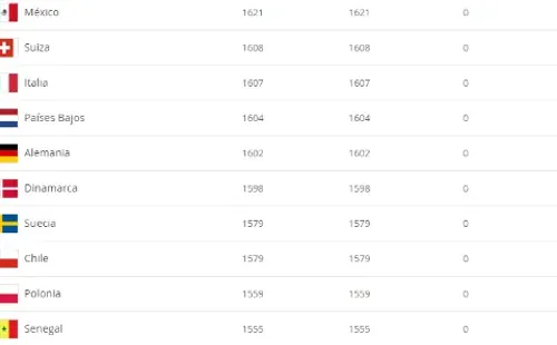 Apenas por debajo, en la undécima posición, aparece México, la mejor de las selecciones de Concacaf, con muy buena distancia sobre Estados Unidos que aparece recién en el puesto 22.