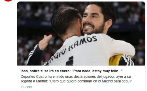 Sin embargo, en su regreso a Madrid tras tomarse un descanso, Isco expresó cuáles son sus intenciones a futuro.