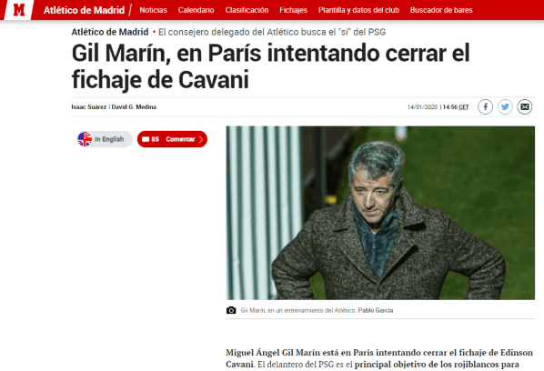 Sigue la novela sobre la posible llegada de Edison Cavani al Atlético Madrid. Al principiose habló de que habían logrado un arreglo para que arribe en condición de libre en junio de este año.