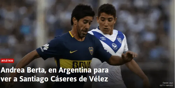 Según reportael diario españolAS,el director deportivo del Atlético Madrid Andrea Berta se encuentra en Argentina para ver almediocampista, que jugará como titular el próximo sábado ante Temperley.