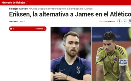 Según el diario Marca, el danés Christian Eriksen, una de las figuras del Tottenham de Inglaterra, sería el elegido en caso de no poderse dar el fichaje. El habilidoso jugador estaría buscando nuevos aires y tras enfriarse las negociaciones con el Real Madrid, su próximo equipo estaría del otro lado de Madrid.