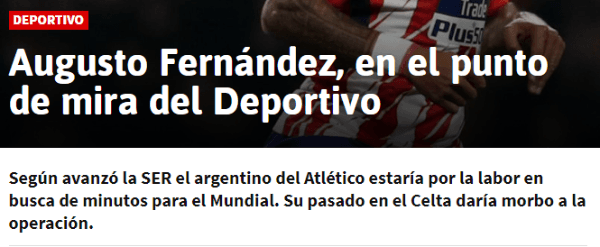 “La única pega que podría tener la operación, al margen de que se alcance un acuerdo económico, es el pasado celeste de Augusto.El pivote argentino, de 31 años, militó en el eterno rival durante cuatro temporadas e incluso llegó a ser capitán del Celta”, publicó AS.
