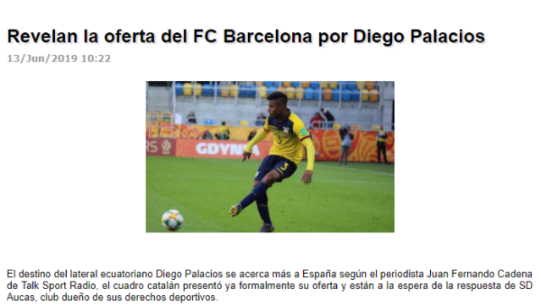 Según avanzaron enTalk Sport Radio, desde el club culé habrían enviado ya la primera oferta al Aucas de Ecuador y están a la espera de una respuesta.
