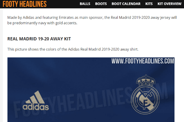 Aunque poco se deja ver en la imagen que a modo ilustrativo adelantó el portal, estos aseguran que Real madrid tendrá una segunda equipación azul con ribetes y detalles en dorado.