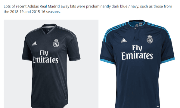 El diseño se asemeja a otras dos camisetas alternativas que ya utilizó Real Madrid: la de la temporada 2018-2019 y la de la temporada 2015-2016.