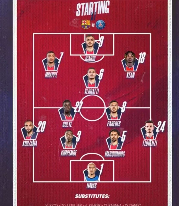 Desde el lado del elenco de Mauricio Pochettino, sorpresas no hay, aunque sí la ausencia más destacada de la serie: la de Neymar, quien en la previa posteó su frustración por perderse el partido.