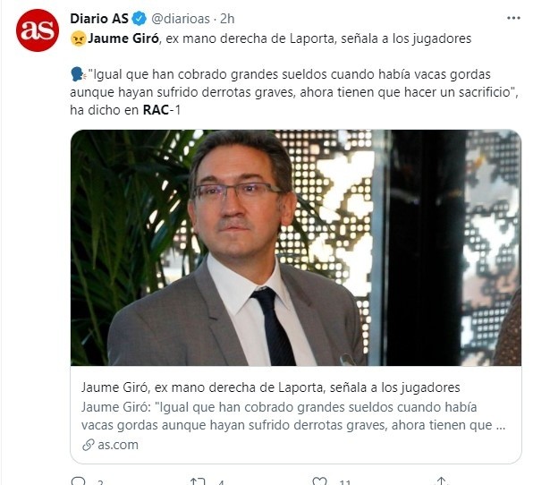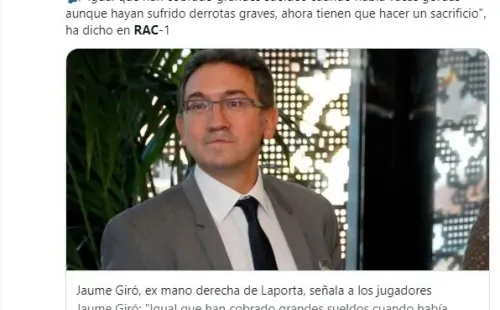 “Ahora les toca hacer un sacrificio personal. Y aunque hagan un sacrificio, cobrarán más que un universitario con cuatro carreras y tres idiomas. Hay que poner el foco también en los jugadores”, continuaba un Jaume Giró indignado con el bloqueo que existe para bajar la masa salarial en el club.