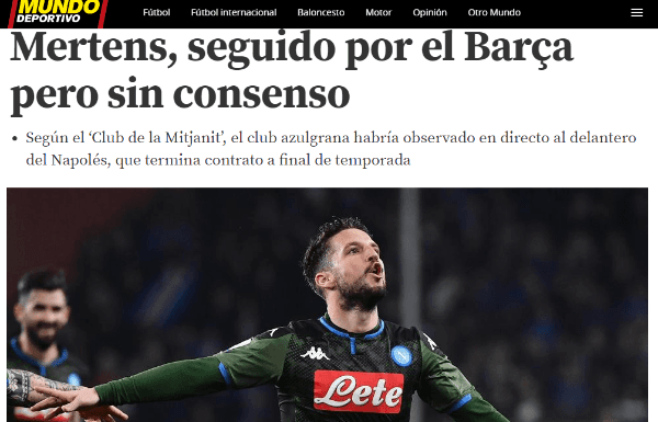El nombre en cuestión es el de Dries Mertens, futbolista del Nápoli. El belga tiene 31 años y es seguido hace rato por los catalanes.