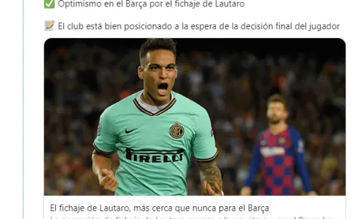 Según avanzó el diario Sport, el día en que decida dejar Inter de Milán, Lautaro Martínez está convencido de que será para recalar en Barcelona, siempre y cuando la oferta contractual esté a la altura.