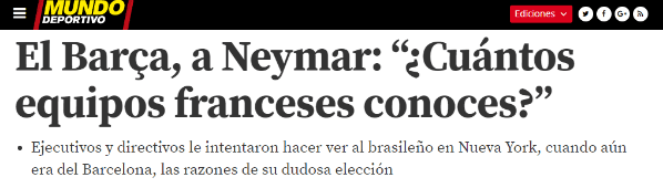 “Vamos a ver,Ney… ¿cuántos equipos de la Liga francesa conoces?”, le habrían disparado los dirigentes Culés.