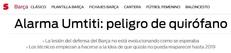 Además, otro temor se gestó en el corazón de la dirigenciay cuerpo técnico Blaugrana, ya que existe la posibilidad de que no podrán contar con Umtiti hasta 2019.