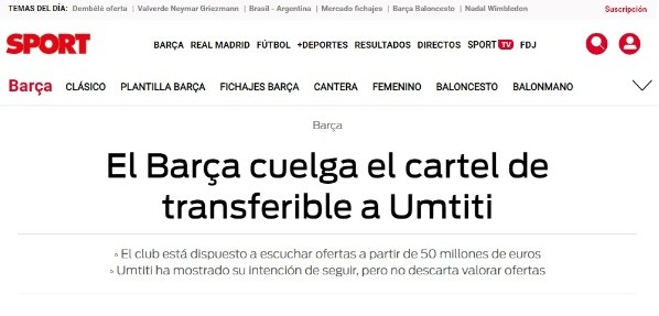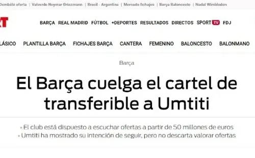 El mencionado medio de comunicación exteriorizó además que Barcelona soltaría a Umtiti, de pasado en Olympique de Lyon, por ofertas que partan desde los 50 millones de euros.