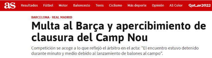 Además, distintos medios europeos indican que el Barcelona también recibió un apercibimiento de clausura del Camp Nou en caso de presentarse dicho inconveniente una vez más en el futuro.