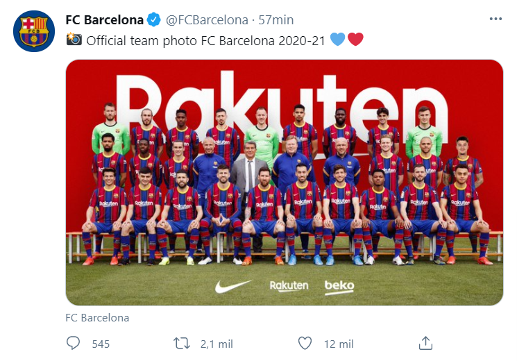 En medio de todo esto, y antes de que se dispute la final de la Copa del Rey ante Athletic Bilbao, un compromiso clave para por lo menos poder terminar con un título la temporada, la cuenta oficial del club español subió la foto del plantel profesional 2020/21, estando presente también el cuerpo técnico y el presidente Joan Laporta.