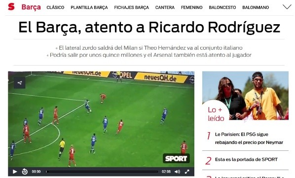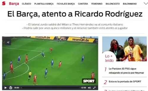 Este sábado, dicho medio de comunicación aseguró que Barcelona se encuentra tras los pasos de Ricardo Rodríguez, lateral izquierdo suizo que actualmente defiende los colores del Milan.